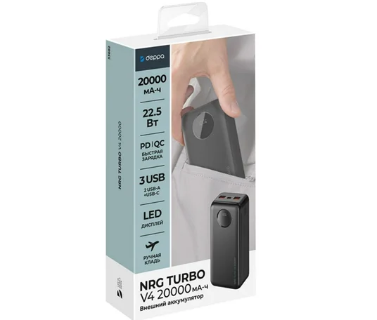 Бренд: Deppa Страна-изготовитель: Китай Емкость аккумулятора: 20000 мАч Входные разъемы: USB Type-C Конструктивные особенности: Защита от перегрузки по току; Защита от перегрева; Защита от короткого замыкания; Защита от перезаряда Технологические особенности: Быстрая зарядка; LED-дисплей Емкость аккумулятора, Вт-ч: 74 Быстрая зарядка: Power Delivery; Quick Charge; FCP/SCP (Huawei); Super Fast Charge; AFC (Samsung) Материал: ABS пластик Выходные разъемы: USB-A Мощность, Вт: 22.5 Количество разъемов: 3 Вес товара, г: 419 Размеры, мм: 67x146x28