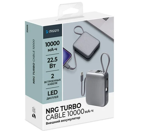 Внешний АКБ 10000 mAh NRG Turbo Cable Deppa, 22.5W, графит в Стерлитамаке